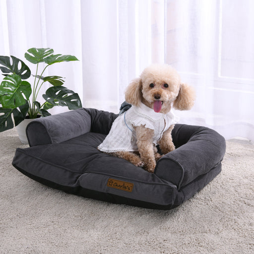 Ripley Corduroy Pet Sofa Bed - Charcoal in 3 Sizes
