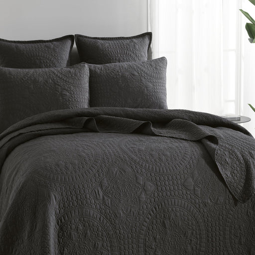 Textured Jacquard Siva Zio 3pc Coverlet Set in Grey by Renee Taylor | Beautiful Oversized Coverlet | 3 Sizes