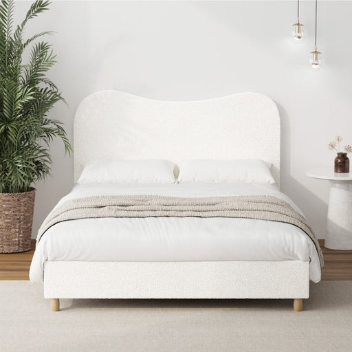 Teddy Plush Heart Boucle Fabric White Bed | Cloud Shape Cushioned Touch White Upholstered Boucle Bed Frame | 5 Sizes