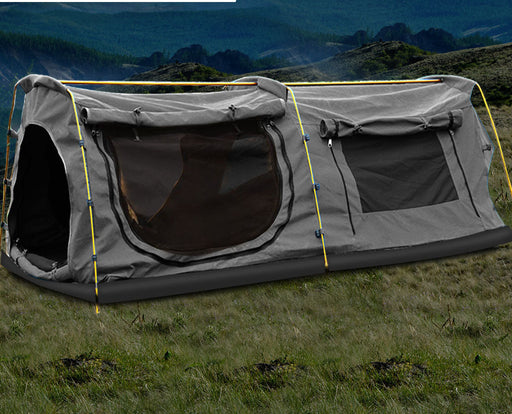 Mountview Double King Swag Camping Swags Canvas Dome Tent Hiking Mattress Grey