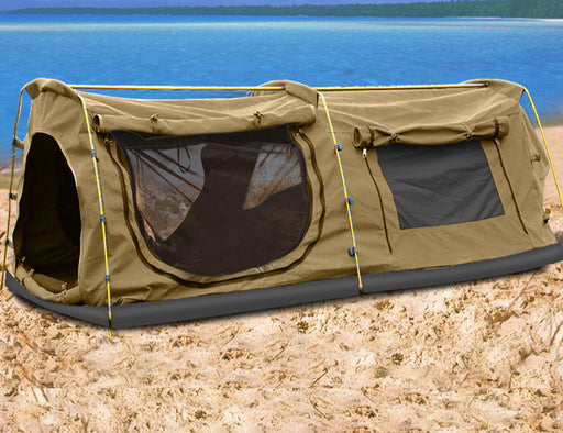 Mountview Double King Swag Camping Swags Canvas Dome Tent Hiking Mattress Khaki