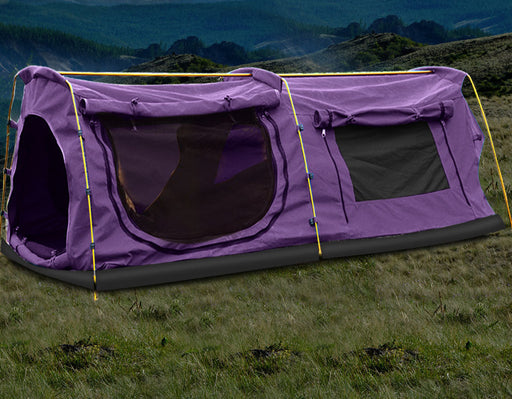 Mountview Double King Swag Camping Swags Canvas Dome Tent Hiking Mattress Purple