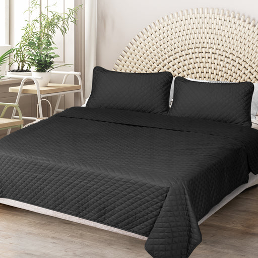 DreamZ Bedspread Coverlet Set Quilted Comforter Soft Pillowcases King Dark Grey