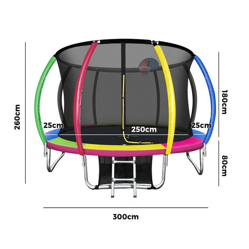 10FT/3m Premium Kids Trampoline with Basketball Set | Rainbow Safe Fully Enclosed Outdoor Play Trampoline by Mazam