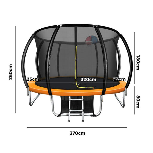 12FT/3.7m Premium Kids Trampoline with Basketball Set | Orange Safe Fully Enclosed Outdoor Play Trampoline by Mazam