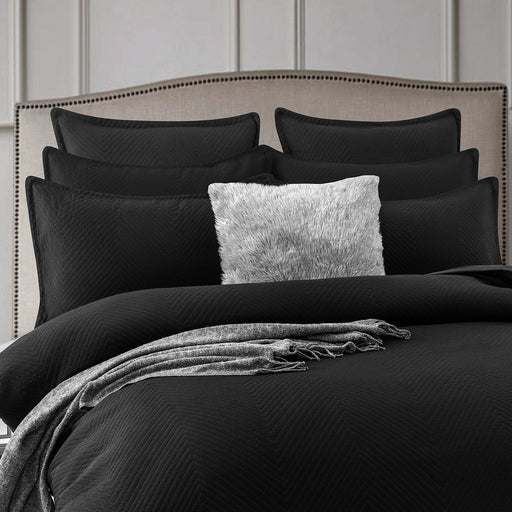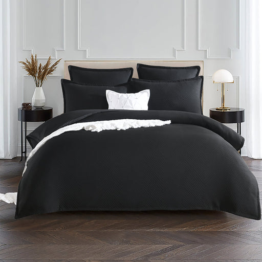 250TC Textured Geo Noire Quilt Cover Set in Black by Renee Taylor | 3 Sizes